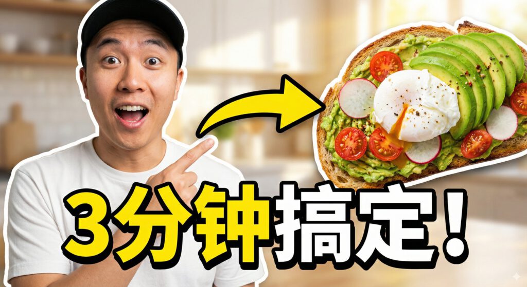 文字:在中间叠加醒目的流行风格文字:“3 分钟搞定!”。使用粗白线和阴影。
