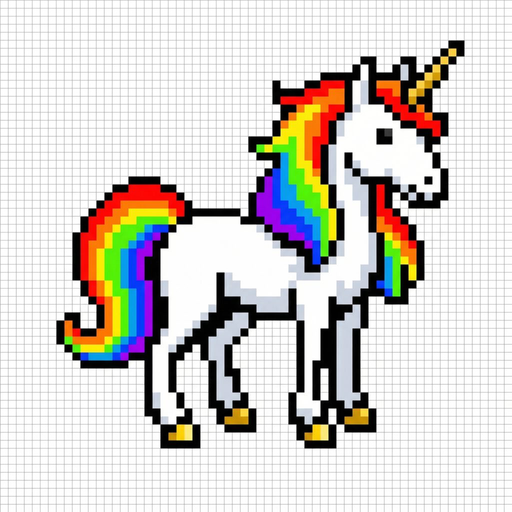 “生成一个独角兽的像素艺术精灵,使其完美契合此 64×64 网格图像。使用高对比度颜色。”